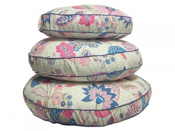 Your furry friend will sleep in the lap of luxury on our comfy Chilvers round dog bed with its pretty floral pattern in pink, blue, and ivory.
