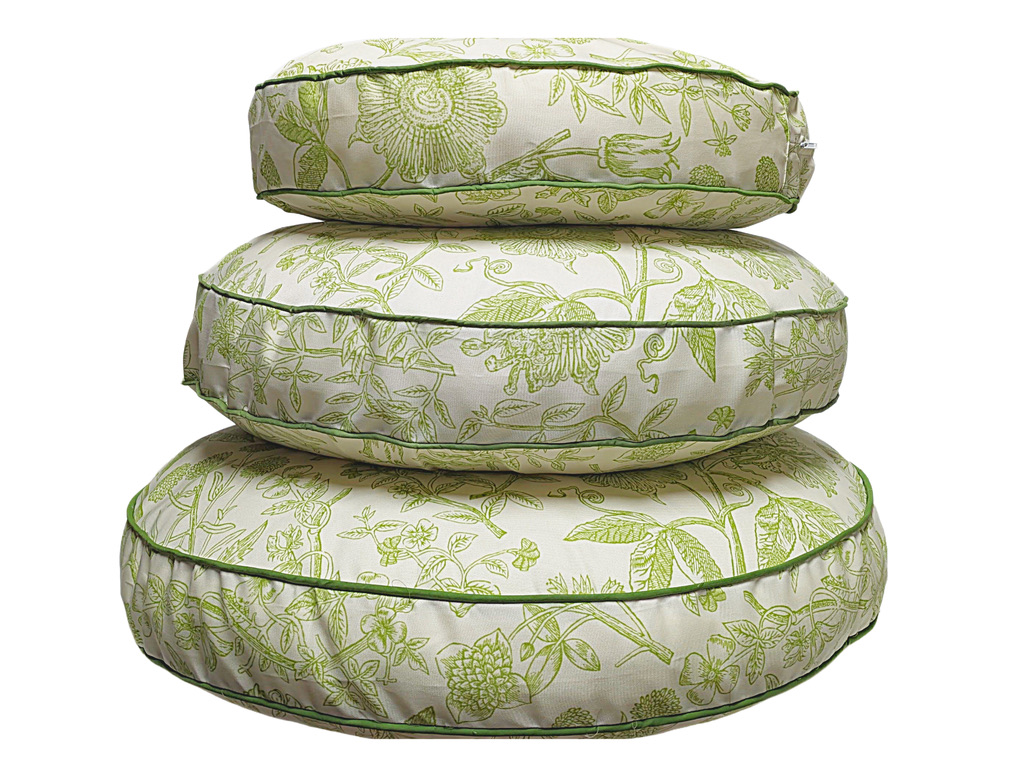 The subtle green floral pattern on a creamy background makes our Conservation collection of luxury round dog beds the place for your pup to stretch out or curl up for a nap.