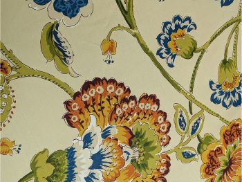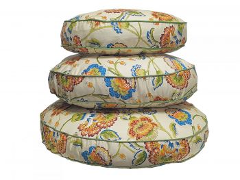 Our Ellison collection of luxury round dog beds shows off colorful Jacobean flora in blue, orange, red, green, and ivory tones. Choose the size that suits your pup!