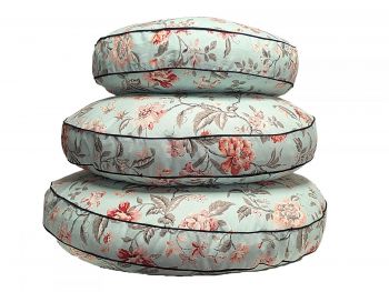 Our Garden Rose collection of luxury round dog beds is a pretty choice, with its meandering vines and flora in blue, gray, pink, orange, aqua, and ivory. Pups will love the soft and comfy feel, and will curl up or stretch out for a long doggy nap.