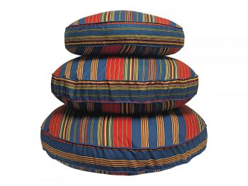 There is nothing better than our Lodge Stripe Royal collection of luxury round dog beds to accent your décor in vibrant blue, red, and yellow. Especially when it creates a comfy spot for your furry friend to stretch out or curl up for a nap!
