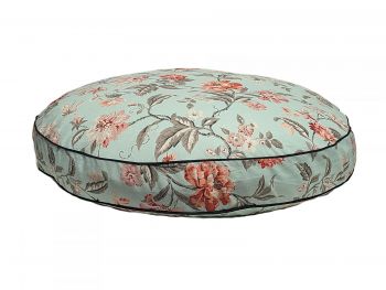 Our Whimsy collection of luxury round dog beds shows off a high-end designer floral pattern in shades of red, green, blue and tan on a light green background. This blending of colors is sure to enhance any decor. Your pup will spend many hours curling up or stretching out on this comfy bed!